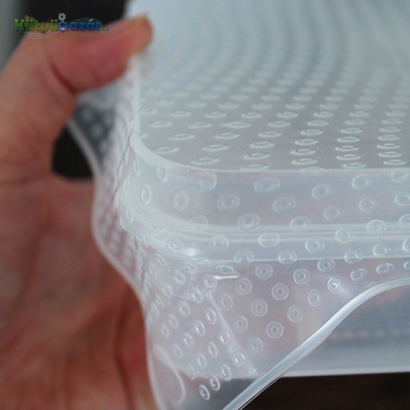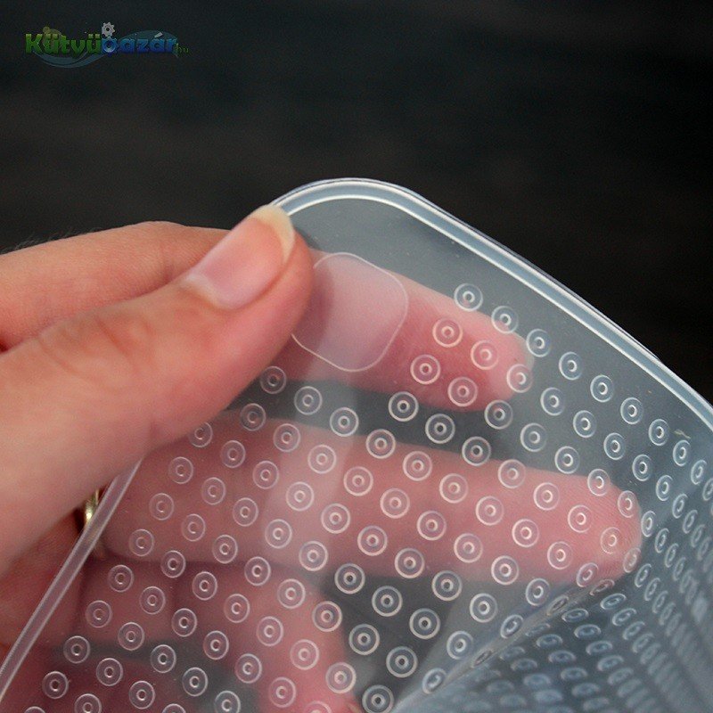 Csak egyszerűen húzd rá a tányérra, tálra, edényre, vagy szinte bármire, amiben az étel van. A megbízhatóságát bizonyítja, hogy még folyadékot is tárolhatsz így, mert a teljes illeszkedése miatt a fejre állított pohárból sem fog kifolyni. A tisztítása is rendkívül egyszerű, mivel nem tapad hozzá az étel.
