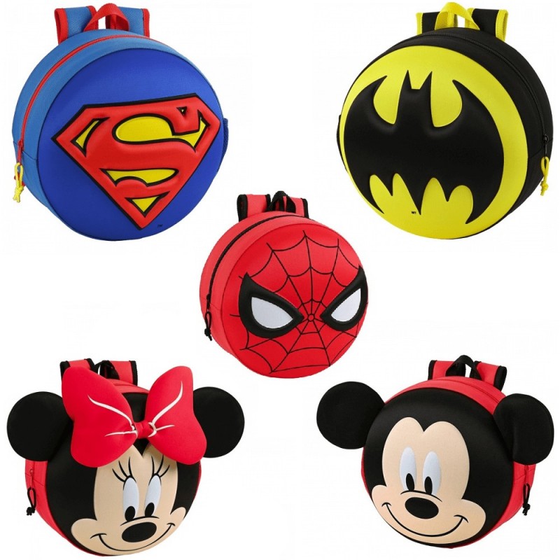 A kerek táska 3 dimenziósan teszi élethűvé a rajta lévő mintákat. Vidd magaddal kedvenc karaktered, legyen az Minnie egér, Mickey egér, Pókember, Batman vagy Superman. Kis, komapkt méretéhez képest nagy kapacitással rendelkezik (10 L), így a legfontosabb dolgaidat gond nélkül el tudod szállítani benne. Anyaga erős poliészter, amely cseppálló és strapabíró, nehezen szakad. A táska pántjai párnázottak és ergonomikusan kialakítottak, így teljes kényelemben hordható az.