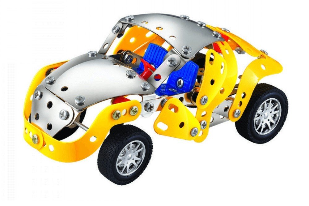 Ez a 160 darabos ötletes készlet kreativitásra serkenti a gyermekeket. A szettből négyféleképpen lehet összeszerelni a járművet. A szett fém és műanyag alkatrészeket, tengelyeket, rengeteg csavart és csavaranyát tartalmaz, valamint egy pontos útmutató segíti az összeszerelés folyamatát. A játék fejleszti a gyermekek kézügyességét, kreativitását, koncentrációját és logikus gondolkodását.