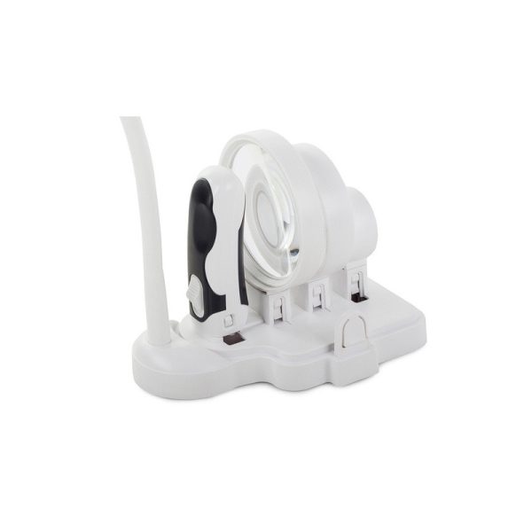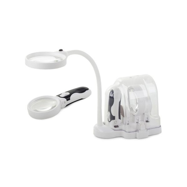 A lencse egy rugalmas karra van szerelve, így igényeid szerint állítható. Emellett 6 LED világítótest is található rajta, amelyek szintén állíthatóak. Ezenkívül van egy fogantyú, amely 2 LED-del van felszerelve, amelyhez bármelyik lencse csatlakoztatható, így kézi nagyítóként is használható.