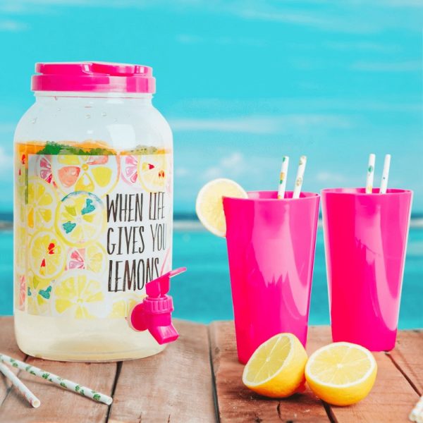 Születésnapok, kerti rendezvények, BBQ partyk elengedhetetlen kelléke. Ideális sör, koktélok, long drinkek, szörp, gyümölcslevek csapolásához. Kiváló védelmet nyújt a rovarok, méhek és darazsak ellen. A termék 3 különböző színben jön, így mindenki megtalálja a hozzá illőt. Anyaga műanyag, maximális kapacitása pedig 3,8 l. Hordozófüles fedele lecsavarható. A csomag tartalmába tartozik még 4 db színes pohár is, amiknek űrtartalma 0,6 l.