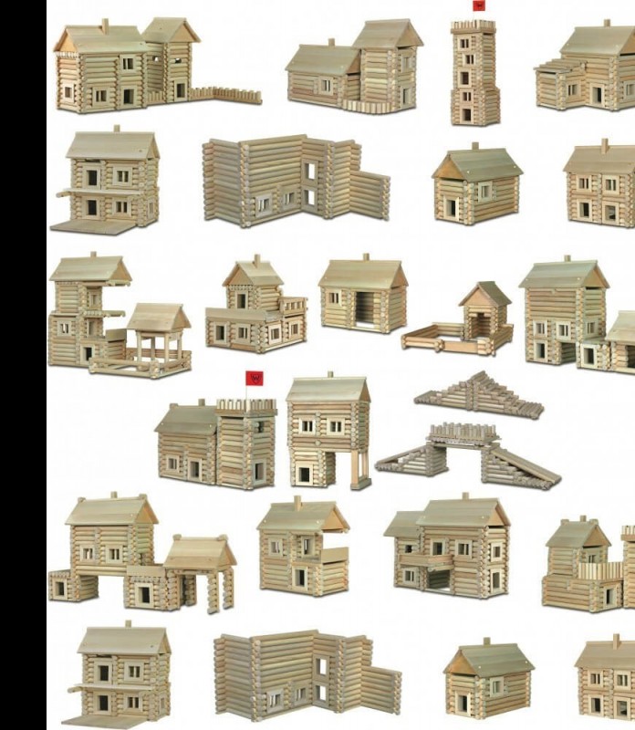 Az egymásba kapcsolódó rönkfa elemekből stabil építmények alkothatók ragasztás nélkül, így azok bármikor szétszedhetők és lehet belőlük újakat építeni. A készlet ovisok, kisiskolások számára nagyszerű fejlesztő konstrukciós fajáték, melynek segítségével motorikus képességeik, képzelő erejük fejlődik. Az összerakott épületeket más játékokkal együtt, vagy kiegészítőjeként is lehet használni. Beleköltözhetnek babák, vagy akár egy vonatsín mellé állomás is épülhet a farönkökből.