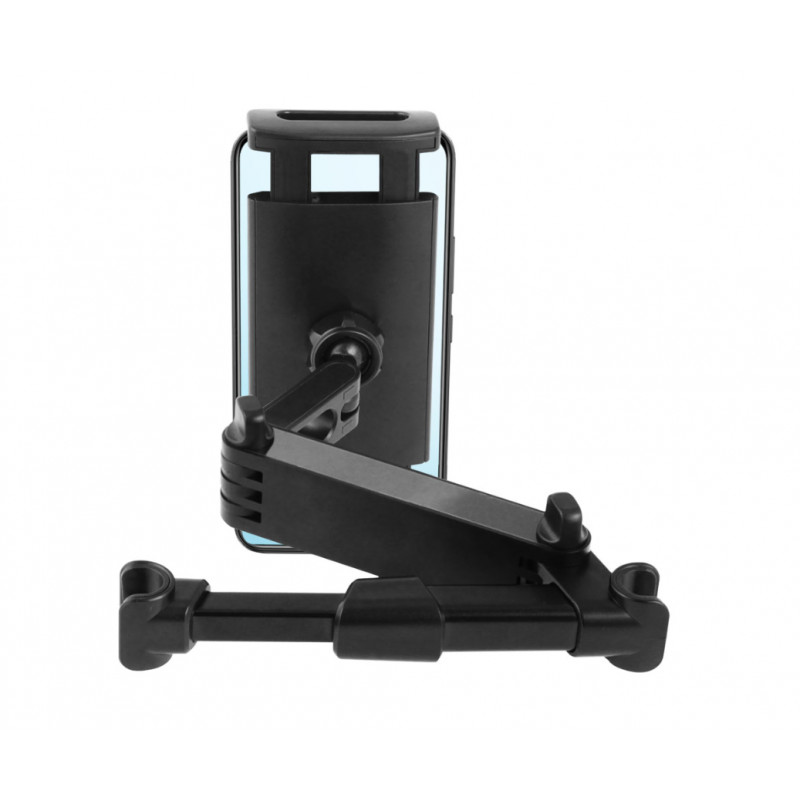 A tartó az autóban az első üléspárnák hátuljára szerelhető. A tartó rögzítéséhez csak nyomd meg a rögzítő rudat, helyezd be a fejtámla rúdjai közé, és enged el a nyomást. A fogantyú automatikusan a fejtámla rudak méretéhez igazodik. 360° fokban forgatható. A tartó lehetővé teszi, hogy közelebb vigye magához a mobileszközt, hogy játék közben irányíthassa, vagy közelebb helyezze az eszközt az autó közepéhez, hogy kényelmesen nézhesse a hátsó ülésen ülő összes utas filmjét. Kihúzható kar hossza: 200 mm.
