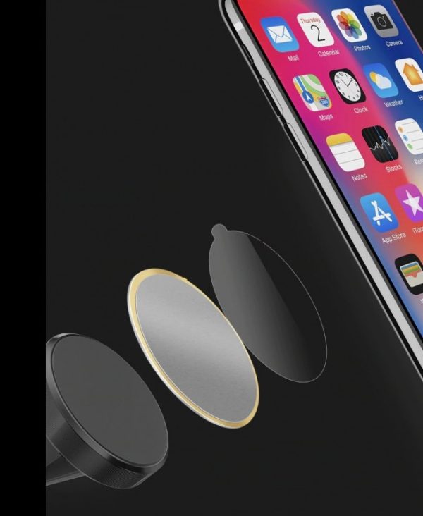 A fém lapot a telefon tokjába tudod helyezni, így tartja meg a tartó a telefonodat. A mágnes nem zavarja a telefon működését.