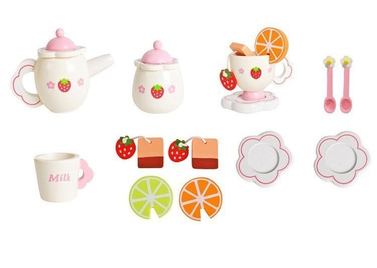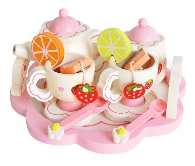 A klasszikus fa teáskészlet fejleszti a képzelőerőt és a mesemondást, miközben a gyerekek teát szolgálnak fel valódi embereknek vagy plüssállat- és bababarátjaiknak. A készlet szerepjátékra ösztönöz, mivel a gyerekek a felnőtteket utánozzák a tea vagy más italok felszolgálásakor, és segít a jó modor kialakításában. Rengeteg érdekes darab, amelyek aktívan lekötik a gyerekeket: tálca, teáskanna, cukortartó, tejeskanna, 2 teáscsésze, 2 csészealj, 2 teáskanál, 2 teafilter, 1 narancs és 1 lime. A teáskészlet remek kiegészítője a konyhai játékkészleteknek és más színlelt játékélelmiszereknek. Az elemek óvodáskorú gyermekek számára méretezettek. A termék folyadék tárolására nem ajánlott.