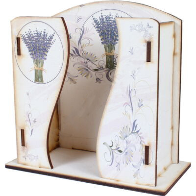 Tárold a zsebkendőidet stílusos fa dobozban! Egyszerű levendulás mintázatú díszítőelem a lakásban.