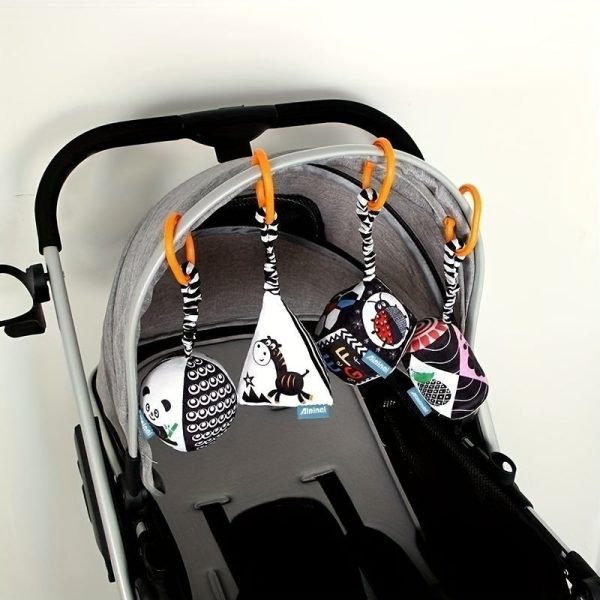 Egyedi és szupercuki Fekete-fehér babakocsis akasztós játék! Ez a játék garantáltan le fogja kötni a kicsik figyelmét, míg te nyugodtan intézheted a dolgaidat. A kis figura egyszerűen rácsatlakoztatható a babakocsi fogantyújára, így könnyedén szórakoztathatja a picit utazás közben.