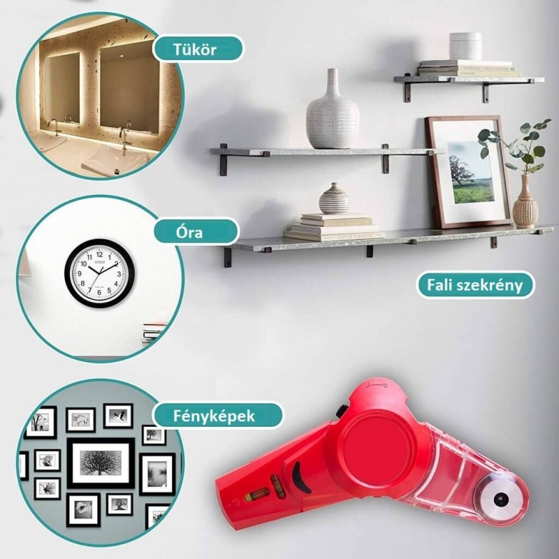A szerszám felhelyezése igen egyszerű, csak rakd oda a falhoz és nyomd, meg piros kapcsolót az alján. Egyedi vákuumos megoldásának köszönhetően bárhová feltapad. Leválasztáshoz csak nyomd meg a fekete gombot a szerszám tetején és már le is szedheted. A beépített lézerszintező megvilágítással van ellátva így rossz fényviszonyok között is használható. Továbbá, ha a szerszám segítségével végzed az a fúrást, akkor a fúrási törmelékkel se kell foglalkoznod.A Fúró segéd tulajdonságai: