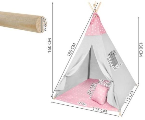 Lefoglalnád gyermekeidet? Folyamatosan bunkereket építenek, vagy éppen minden vágyuk, hogy indiánok legyenek? Akkor lepd meg őket játszósátrunkkal, mellyel igazi élmény lehet számukra a játék. Puha anyagból készült, így használata teljesen biztonságos, a párnáknak köszönhetően akár benne is aludhatnak. Elegáns, modern stílusával biztosan jól fog kinézni a gyerekszobában.  A termék tulajdonságai: