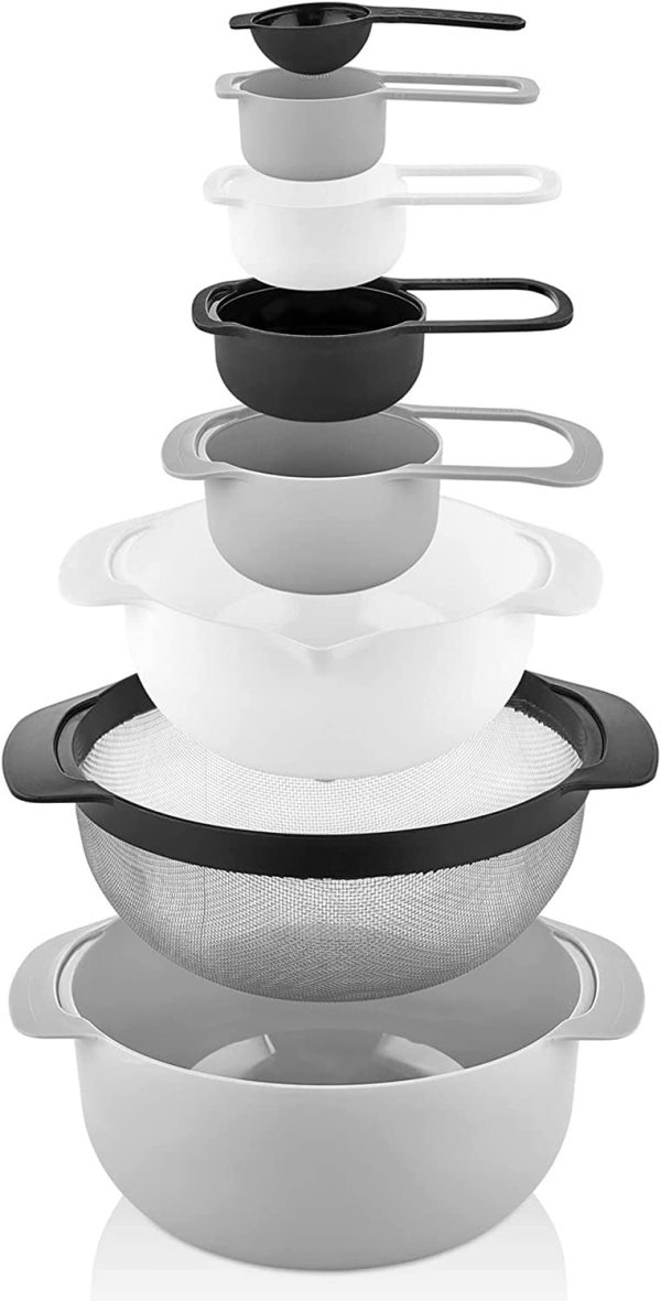 Az 8 az 1-ben tál és mérőpohár készlet ideális választás minden otthoni szakács számára, akik szeretnék, hogy konyhai teendőik egyszerűbbek és hatékonyabbak legyenek. A készlet lehetővé teszi az ételek előkészítését, mérését, adagolását és tárolását, így segít az ételek elkészítésében és a konyhai teendők hatékonyabb elvégzésében.