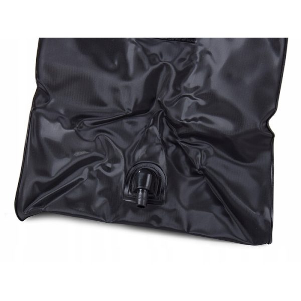 A hordozható tusoló tökéletes megoldás, ha zuhanyozásra van szükség ott, ahol nincs folyóvíz. Ideális kiránduláshoz, kempingezéshez vagy táborhelyen való tartózkodáshoz. A feketére festett anyag gyorsan melegíti a vizet, és a 40 literes űrtartalom bőséges mennyiségű víz tárolását teszi lehetővé. A könnyű használat és a kompakt méretű kialakítás még a legtávolabbi környezetben is komfortérzetet biztosít.