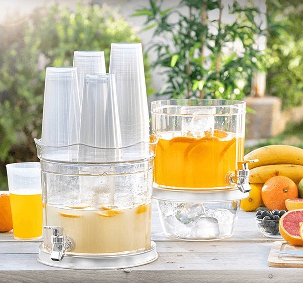 Teljes dupla italadagoló, amely eredeti és praktikus kialakítású. 2 különálló tartálya van 2 különböző italhoz és 2 csöpögésgátló csapja. Központi jégtartálya lehetővé teszi az italok hűtését víz hozzáadása nélkül. A felső fedél uzsonnatálcaként is használható. Az alján egy külön jégtartály is található. Nagyon egyszerűen összeszerelhető, és könnyen szétszedhető tisztítás és tárolás céljából. Ez kétségtelenül nélkülözhetetlen elem ahhoz, hogy friss italokkal szolgálhasd ki vendégeid még a legmodernebb és legszórakoztatóbb partikon és ünnepségeken is.