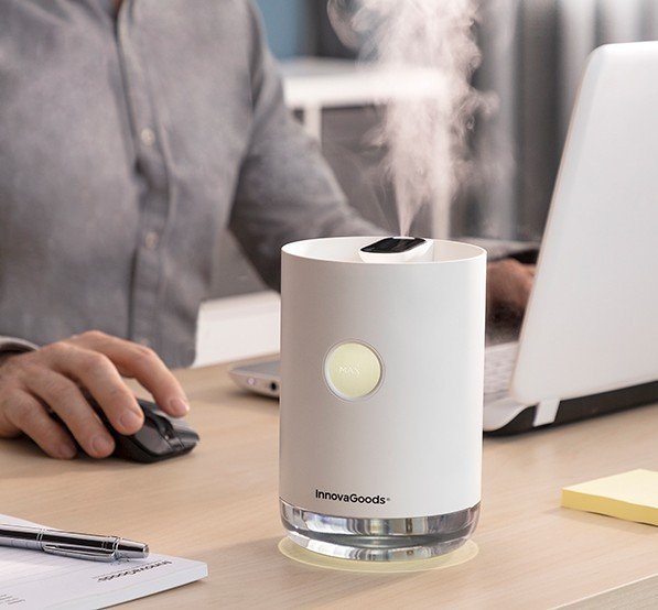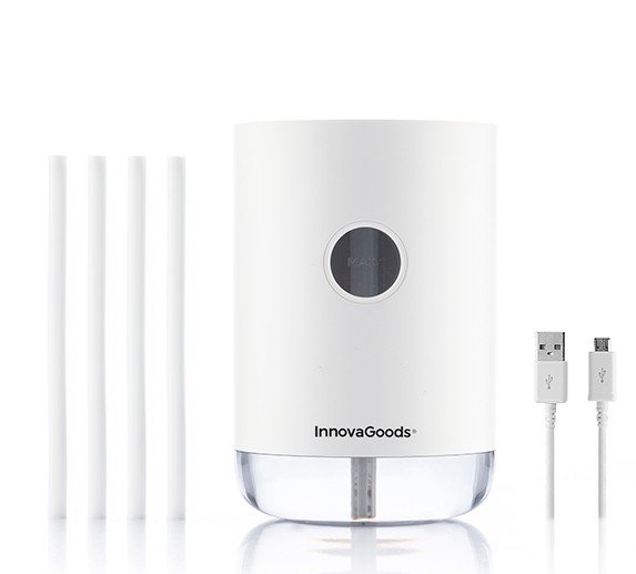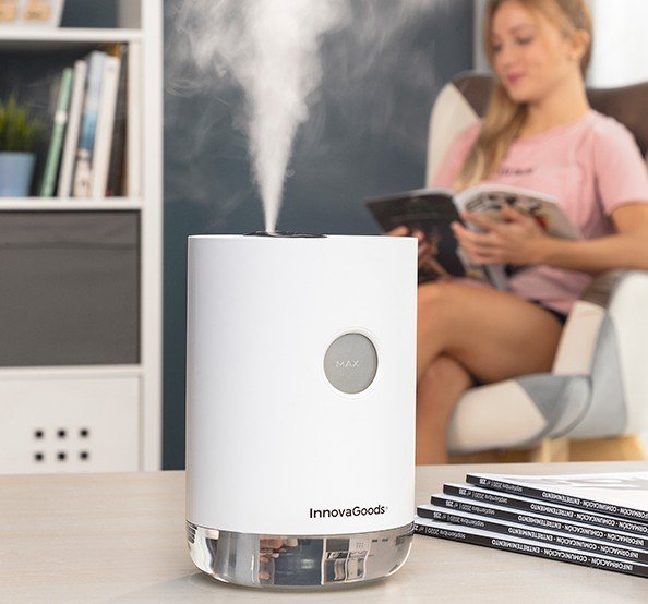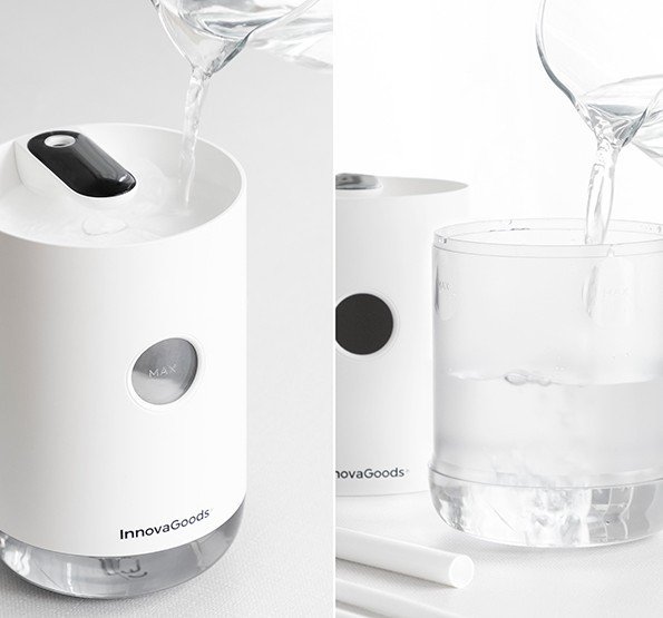 Az InnovaGoods újratölthető, hűvös ködöt kibocsátó párásítója szabályozza a levegő páratartalmát, elősegíti a könnyed légzést, javítja az alvás minőségét valamint a bőr hidratáltságát. Az ultrahangnak köszönhetően használata csendes, egyáltalán nem zavaró, és biztonságosabb, ugyanis nem bocsát ki forró levegőt. Vezeték nélküli kialakítása miatt könnyen hordozható, bárhol elhelyezhető. 9 óra működési idő, illetve amennyiben nincs elegendő vízmennyiség, az eszköz automatikusan kikapcsol. A tartály felső nyílásán át könnyedén újratölthető.