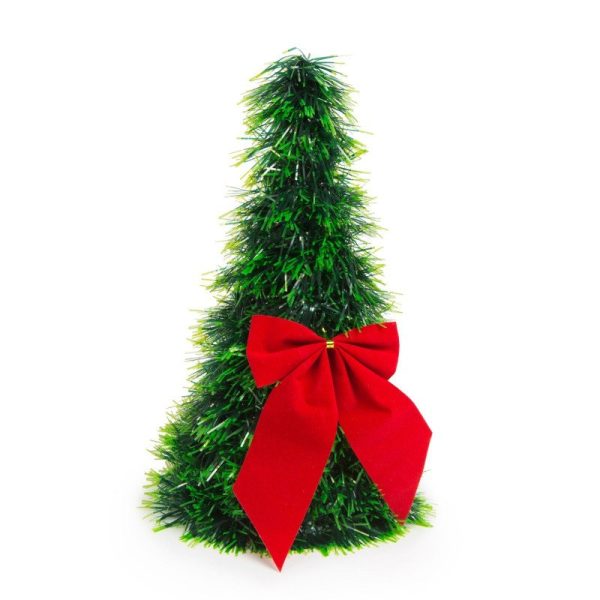 Karácsonyi, asztali műfenyő – zöld – 2 piros masnival – 26 cm