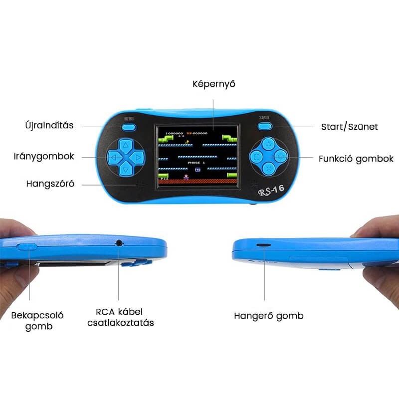 A kézre álló konzollal kényelmes és könnyű játszani. Gombjai gyorsan reagálnak és bírják az eszeveszett nyomkodást is. A 160 beépített játékból bőven találhatnak a gyerekek kedvükre valót.