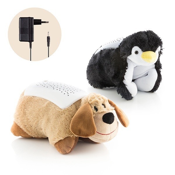 Ez a kisállat plüss garantáltan a legjobb megoldás az egyedül alvás elősegítésére és zökkenőmentessé tételére! Aranyos, puha kialakításának hála, gyerkőcöd azonnal kedvelni fogja. Külseje ráadásul választható, kutya és pingvin között. Puha hasához pedig kényelmesen oda lehet bújni. A kisállat egy holdakkal teli, komplett csillagos égboltot vetít sötétben a falra, aminek hála gyermeked félelmei azonnal elmúlnak majd, végre biztonságban érezheti magát! Vége annak az időszaknak, hogy az egész család fáradtan, kipihenetlenül ébred, ugyanis csemetéd ezentúl kitűnően fog aludni, így az ezzel járó stressznek és aggódásnak is vége. A projektor három különböző színben képes világítani, ezek pedig a kék, a zöld és a sárga. A 2 világítási mód közül az egyik fixen egy színt vetít, a másik pedig folyamatosan váltogatja színeit. A projektor automatikusan kapcsol ki, nagyjából 50 perc után. Nem csak gyermekek, bármilyen korosztály számáró kiváló! Tökéletes dekoráció minden szobában, garantáltan, akármilyen helyiséget feldob! Tulajdonságok: Anyag: Műanyag, puha pamut és poliészter Méret: 30 x 10 x 30 cm Vetítés: 3 színben (kék, sárga és zöld) Tápegység: 3AAA elem (nem tartozék) vagy hálózati adapter (tartozék) Szín: típustól függ Mit rejt a termék doboza? 1 db Kisállat plüss játék, projektorral