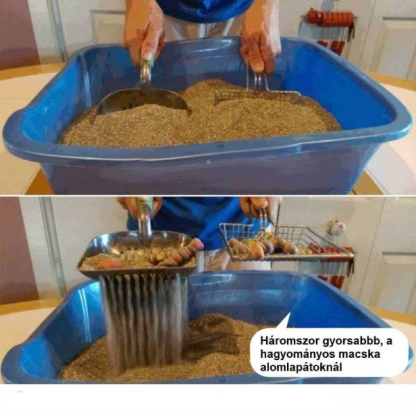 Viszont! Mi elhoztunk neked egy olyan kütyüt, amivel a közel a harmadára csökkentheted a takarítással járó időt! Ezzel a macskaalom lapáttal néhány másodperc alatt, visszamegy a jó alom az alomtálcába, és a rossz pedig fenn akad. Ezt követően egy mozdulattal kidobhatod a kukába a használt almot!