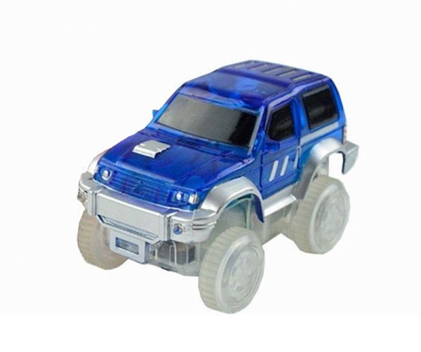 Az 1 db ceruzaelemmel működő kisautó LED világítása sötétben segít megvilágítani a pályát.