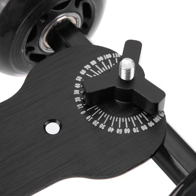 Kerekeinek irányát csavaros megoldással tudod változtatni. Gumis kerekei csendesen mozognak, hogy ne zavarjon felvételkészítés közben. Használhatod sík terepen, asztalon vagy dolly csúszkapadon is.