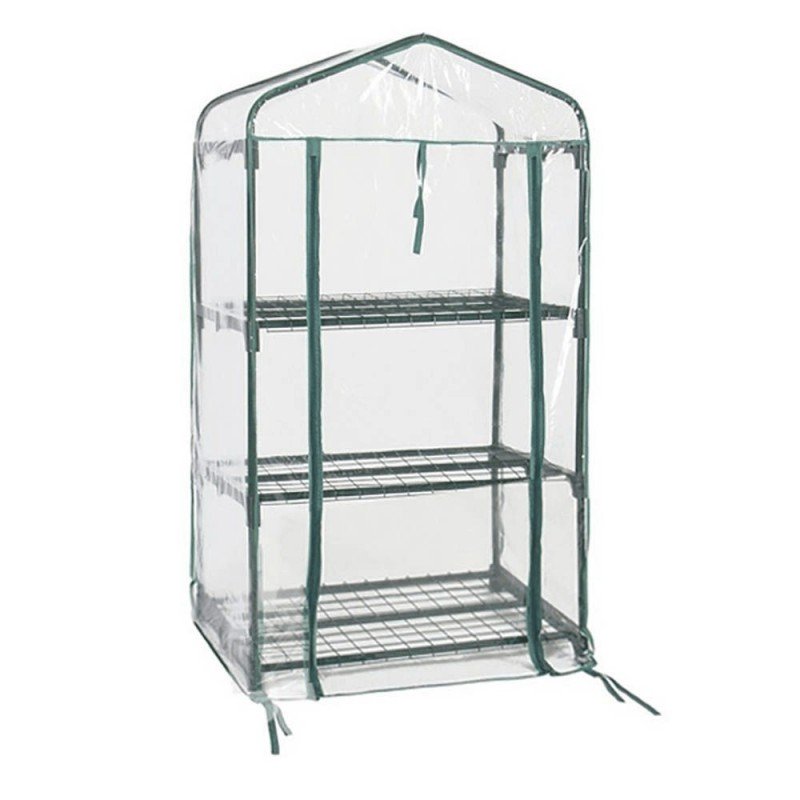 A mini melegházban három polc található, ezek 30,5 cm távolságra vannak egymástól. A szerkezet és a polcok fém anyagból készültek, a ponyva pedig PVC-ből. Ajtaja 2 oldalán cipzáros, feltekerhető és tépőzáras pánttal rögzíthető. Egyszerűen szállítható, ezért bárhol felállítható a kertben, erkélyen és teraszon egyaránt.