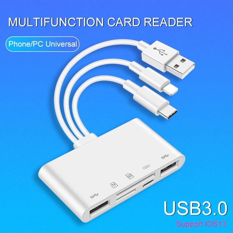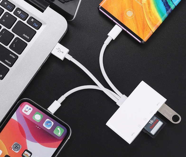 1 db Multifunkcionális kártyaolvasó, háromféle USB adatkábellel