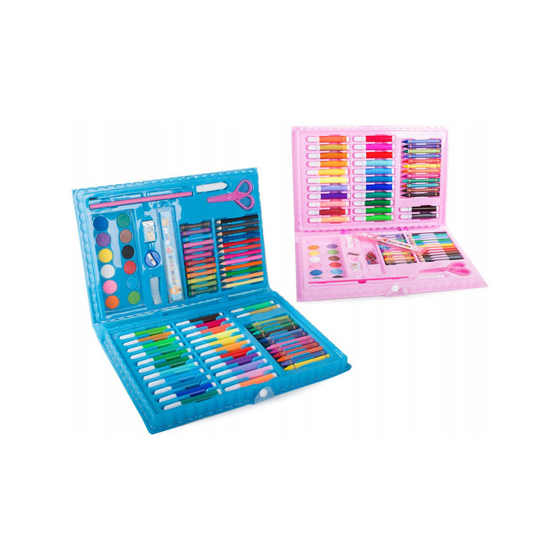 Termékleírás: ✨ Ez a művészeti készlet inspiráló és kreatív játék a gyerekek számára, amely fejleszti a képzelőerőt és tanítja a kreatív gondolkodást. Válogatott zsírkrétákkal, filctollakkal, olajpasztellekkel, gyertyapasztellekkel, vízfestékekkel és kiegészítőkkel könnyedén alkothatsz a legképzeletesebb, legkreatívabb és legoriginálisabb műveket. A teljes készlet egy műanyag tokban található, ami lehetővé teszi az összes tartalom egyszerű és kényelmes szállítását. Emellett van egy fogantyú is a kényelmes szállításhoz. Minden szükséges kiegészítőt egy helyen találsz, így nem kell keresgélned a kedvenc zsírkrétád vagy a szükséges festék színének. Rajzolás és festés rendkívül kreatív tevékenység, amely fejleszti a képzeletet, de az ötletek megvalósításához és papírra való átviteléhez szükség van a megfelelő festési eszközökre. A készlet akár 86 elemet is tartalmaz.