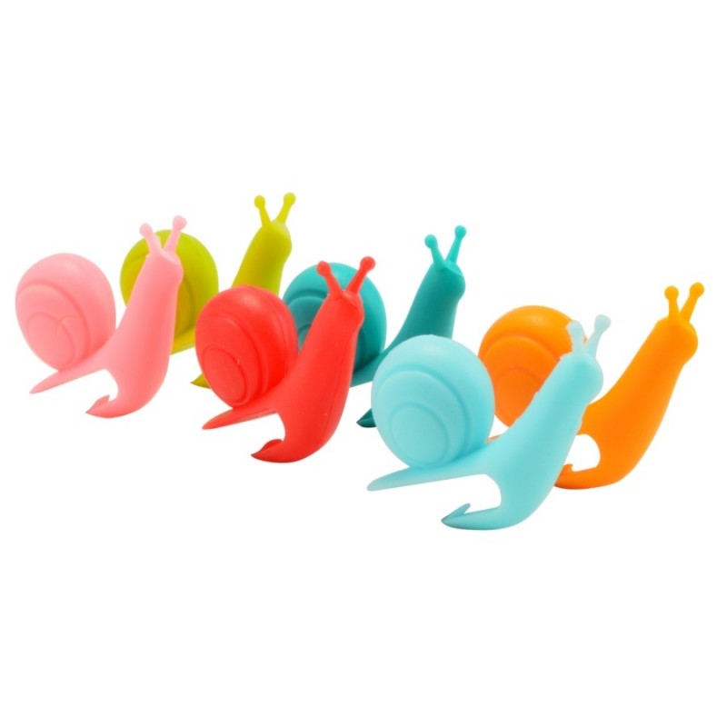A mókás csiga alakú pohárjelölőkkel könnyedén megkülönböztethetők az egyforma poharak. Ideális családi vagy baráti összejövetelekre, gyerekzsúrokra. Teázás közben ideális a filterek rögzítésére.