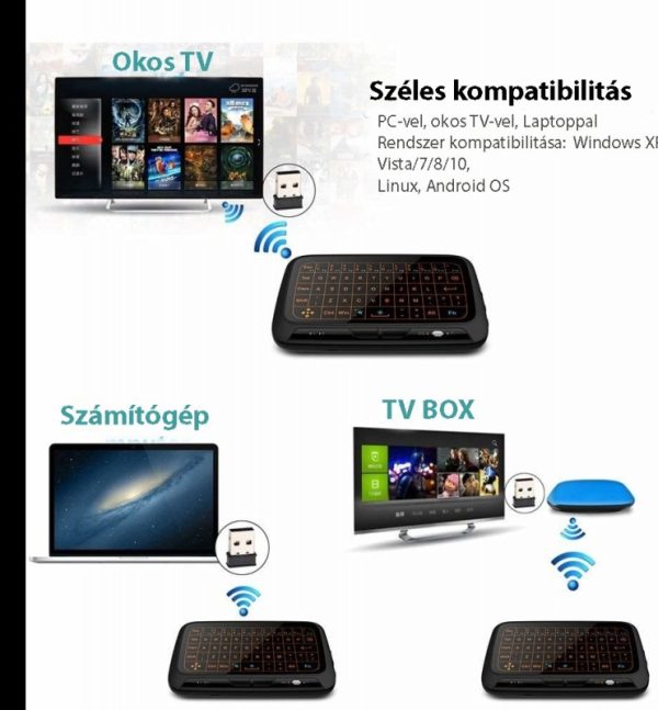 Vezeték nélküli érintőképernyős billentyűzet/távírányító okos TV-hez, számítógéphez
