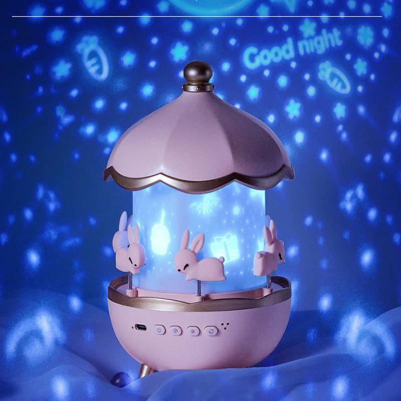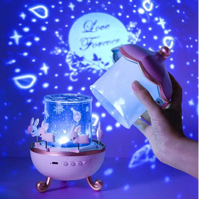 Ez kivetítős lámpa aranyos nyuszikkal és hangulatos dallammal, olyan idilli légkört képes teremteni, mintha csak a vidámparkban a körhintán lennénk.